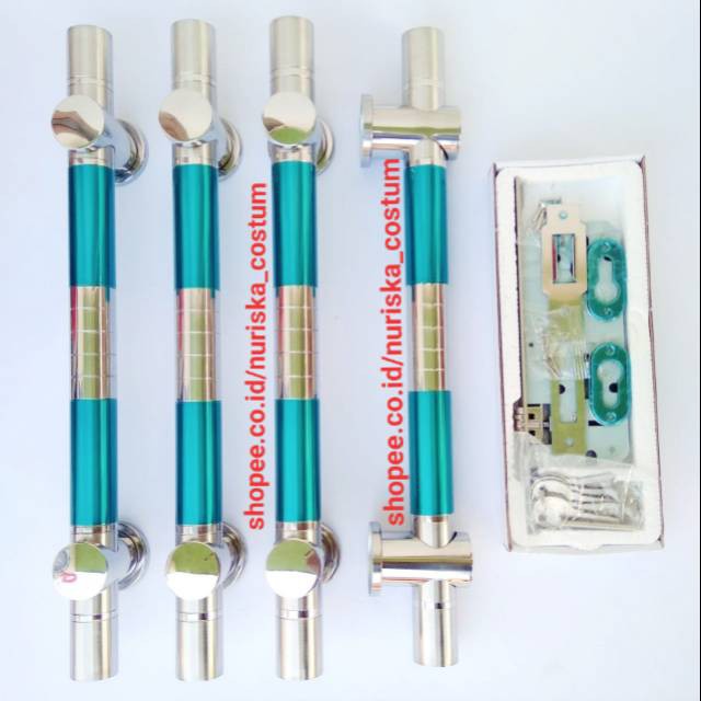 Name: Handle Gagang Pintu Rumah Minimalis Terbaru Warna Biru Tosca 4 Biji + Body Kunci Pelor