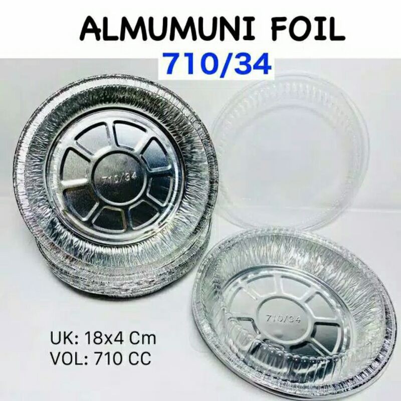 Alumunium foil Bulat 710/34 / Aluminium Foil RX725 tanpa Tutup (lid)Ukuran:Size Diameter Atas : 18cmSize Diameter Bawah : 13,5cmTinggi : 4cmVolume : 710mlHarga di atas di atas /10pcsMinimal order 10pcs dan berlaku kelipatanEx :10 20 dan 30tersedia 2 pilihan-pakai tutup-tidak pakai tutupTersedia juga bentuk, kode dan Ukuran yang lain.happy SHOPPI