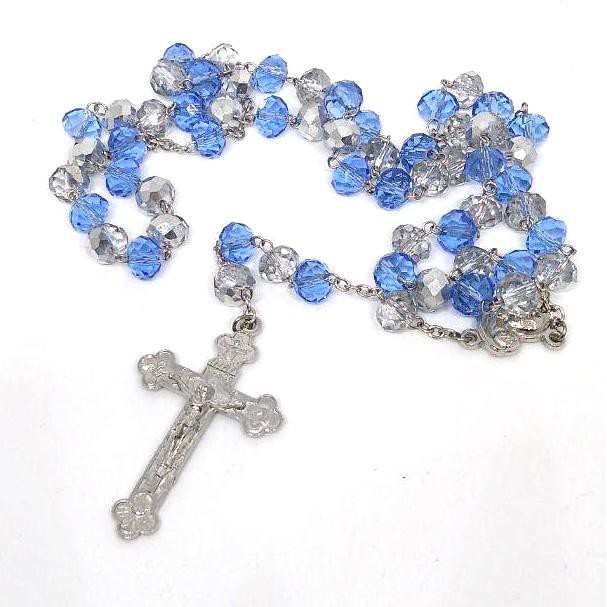 Rosario Mewah Kristal Blink Bling warna BIRU Kerlip Ceko 8mm Doa Katolik + Kotak Rosario AkrilikBahan kristal ceko 8mm soft blue dan silverKawat stainless monelBias kemilauan seperti diamondLooping kawat rapihSUDAH termasuk kotak rosario ak