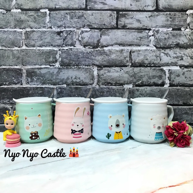 Mug / cangkir keramik super imut dan cantik bermotif karakter berbagai hewan yg super imut nan menggemaskan dan dilengkapi dengan sendok berbahan stainless yg sangat serasi dengan mug nya ☕️ Mug bermotif berbagai hewan super lucu kesayangan anak2 maupun org dewasa, setiap warna mug memiliki kombinasi motif hewan yg berbeda2 dan semuanya lucu serta serasi dengan warna mug yg soft... Super cute!! Terbuat dari bahan keramik HIGH QUALITY!! Dan dilengkapi pula dengan sendok stainless yg akan menjadi pasangan serasi dari mug ini.. Super imut! .Motif pada mug di print dengan rapi dan dicat dengan warna2 pastel yg soft, print an dijamin tidak akan kelotok, selain itu terdapat texture garis2 pada mug yg membuat model mug semakin unik! Mug juga dilengkapi dengan tutup mug yg serasi.. Model mug sangat simple seperti mug classic pada umumnya akan tetapi juga sangat cantik dan manis .Sangat cocok utk dijadikan kado bagi pasangan maupun tmn2 kita krn dikemas dalam box yg cantik.. RECOMMENDED!! LIMITED STOCK!!.Tersedia dalam 4 pilihan warna :- Green Cat- Pink Rabbit- Blue Bear- White SheepUkuran : Tinggi 9cm x Diameter 9cm** DIJUAL SATUAN!! TIDAK TERMASUK MAINAN DISAMPINGNYA!!.#jualkeramik #muganimal #mugrabbit #jualmugset #mugmonkey #mugteddybear #mugcat #mugpasangan #mugkucing #gelasmonkey #gelaskucing #gelasrabbit #gelasbear #gelaskelinci #mugkelinci #gelascat #rabbitmug #mugku