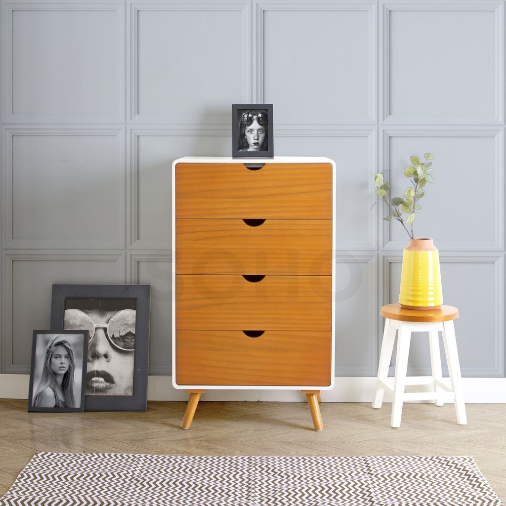 Penyimpanan dengan empat laci. Laci menggunakan rel besi yang mudah dibuka dan bakal awet. Dikirim semi-knockdown, cuma tinggal pasang kaki.P: 60 cmL: 40 cmT: 102 cmPilihan Warna: Ivory, Two Tone (Ivory Natural)Bahan: kayu mahoni, papan mdf, finishing cat duco.Selalu tanyakan ketersediaan stok sebelum transaksi, karena stok kami berjalan.Catatan Sebelum Membeli:1. Pengiriman ke Bandung & Jabodetabek hanya dikenakan ongkir 1kg via JNE/J&T/SiCepat.2. Pelanggan di luar Bandung & Jabodetabek, dikenakan ongkir tambahan karena akan dikirim via cargo. Silahkan hubungi kami via DM atau WA untuk cek ongkir.3. Kami hanya akan mengirimkan catatan / faktur melalui JNE/J&T/SiCepat dsb.4. Barang fisik dikirim menggunakan kendaraan toko atau kargo lain - lebih murah (untuk luar Jabodetabek Bandung) dan aman.5. Resi diinfokan 2 – 3 hari kerja setelahnya, jika barang ready.6. Jika ada komplain, langsung hubungi customer service Soho Furniture (09.00-18.00). Lebih fast response dan pasti puas. Komplain / reputasi buruk via Shopee akan menghambat proses klaim dan transaksi dianggap selesai.7. Barang yang dijual adalah yang sesuai dengan nama dan deskripsi barang. Barang lain yang tampak di foto yang tidak sesuai dengan nama dan deskripsi hanyalah properti foto saja, tidak termasuk barang yang dijual.Saat Menerima Barang / Syarat Ketentuan Klaim:1. Foto packing barang paling sedikit dari dua sisi.2. Jika ada cacat / komplain, foto bagian yang rusak dengan penjelasan rinci.3. Kirim ke WA Soho Furniture.4. Batas waktu klaim adalah 2 hari setelah barang fisik diterima.5. SOHO berhak menerima / menolak komplain yang diajukan jika tidak termasuk barang cacat.Dengan membeli barang ini, Anda menyetujui syarat di atas.Showroom: SOHO Furniture Store, Jl Ibrahim Adjie no 423 Bandung.Google: Soho Furniture store Ba
