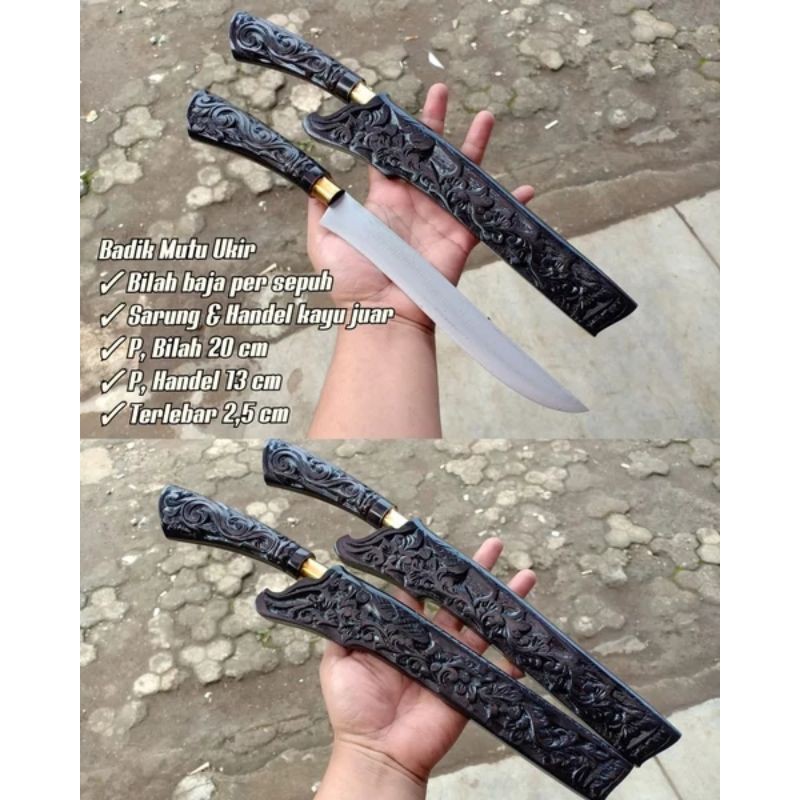 READY STOK..(Setiap pembelian 2 pcs gratis pisau dapur )". Panjang Bilah : 20 cm". Panjang Handle : 13 cm".Lebar bilah : 2,5 cm".Tebal bilah : 4 mm". Bahan Bilah : spring stell full ht (proses tempa dan sepuh air )". Bahan Sarung : kayu keras / kuat".Bahan Handel : kayu keras / kuat". Ketajaman : Standar tajam iris ke