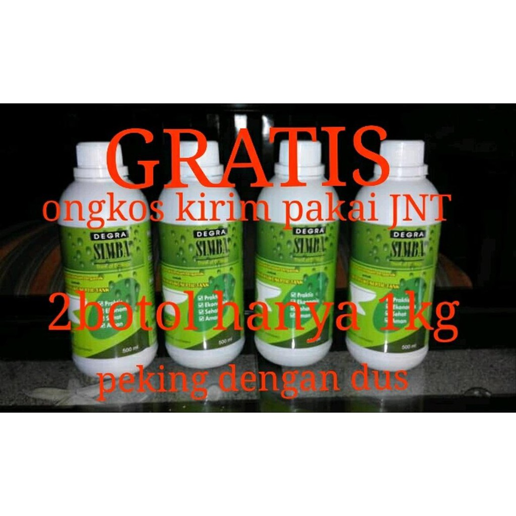 BIG SALE!!!PROMO SAMPAI TANGGAL 30 !!!Saran Pemakaian :# 2 Botol degra Simba untuk perawatan dan melancarkan mampet ringan# 4 botol degra simba atau lebih untuk melancarkan saluran air dan septictenk yang penuh / sudah parahTENTANG DEGRA SIMBADegra Simba merupakan bio-processor untuk pengolahan limbah organik dari sektor perumahan, hotel, apartemen, rumah sakit, pabrik makanan olahan, restauran dan gedung perkantoran. Bagi perumahan DEGRA SIMBA digunakan untuk menguras WC tanpa sedot. Degra Simba mengandung mikroba probiotikyang aman bagi manusia dan lingkungan, ampuh untuk mengatasi saluran yang tersumbat bahan organik dan menghilangkan bau busuk pada kloset. Teknologi ini sudah lama diterapkan oleh negara-negara maju seperti Eropa, Amerika, Jepang, Australia dan lainnya. Beberapa tahun yang lalu, KPP Hayati ITB Bandung dipimpin oleh DR. Ir. I Nyoman Pugeg Aryantha bekerja sama dengan PT. RSDH melakukan penelitian dan menghasilkan produk dengan nama DEGRA SIMBA yang diambil dari kataDEGRAdable SIMbiosis BActeria.Sesuai dengan namanya, bakteri ini adalah yang bersifat Menguntungkan karena:Membunuh bakteri pathogen Mengurai limbah di dalam septic tank / WC KEUNTUNGAN :1. Menghilangkan bau septic tank2. Mengatasi WC mampet atau penuh tanpa perlu disedot3. Menjaga kualitas sumur dekat septic tank / WC4. Membunuh kuman penyebab disentri, cholera dan typus5. Mencegah penyumbatan saluran / selokan6. Pemakaian cukup 2 kali setahun (setiap 6 bulan sekali)CARA PEMAKAIAN PADA WC : A. SEPTIC TANK MEMILIKI LUBANG UDARA1. Tuangkan 1 botol DEGRA SIMBA ukuran 500 ml ke dalam kloset WC2. Kemudian siram dengan air secukupnya agar cairan masuk ke dalam septic tank3. Biarkan closet WC selama 5 s/d 6 jam ( sebaiknya dilakukan malam hari ). B. SEPTIC TANK TIDAK MEMILIKI LUBANG UDARA1. Tuangkan 1 botol DEGRA SIMBA (ukuran 500 ml) ke dalam wadah (ember)2. CSKU : 3131/10854484919081205
